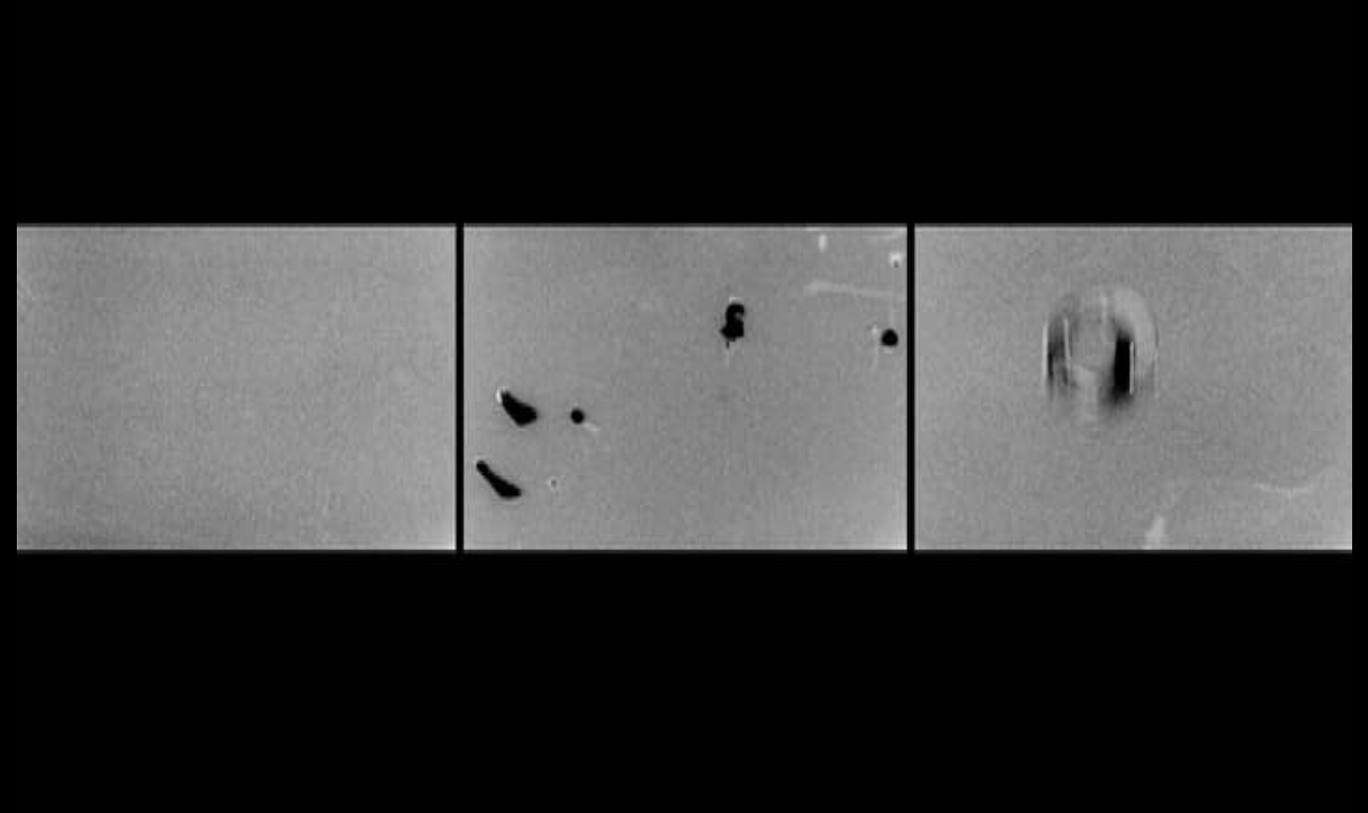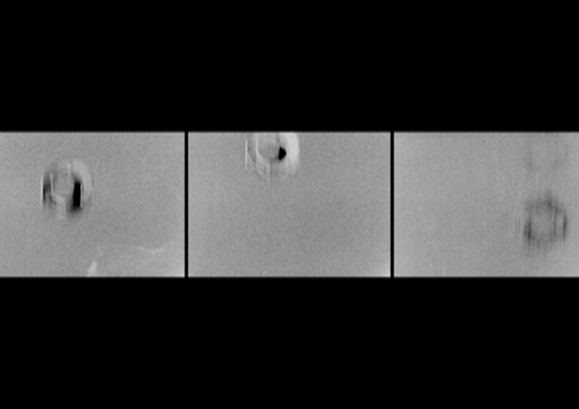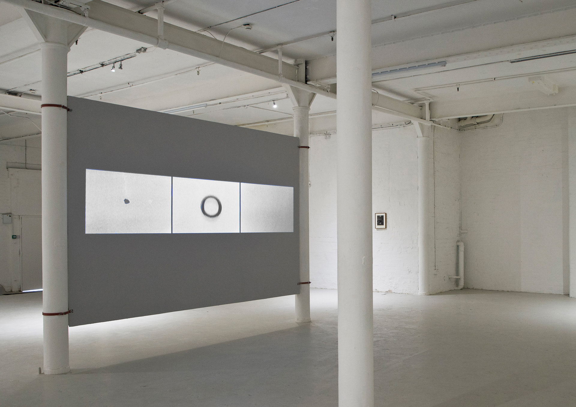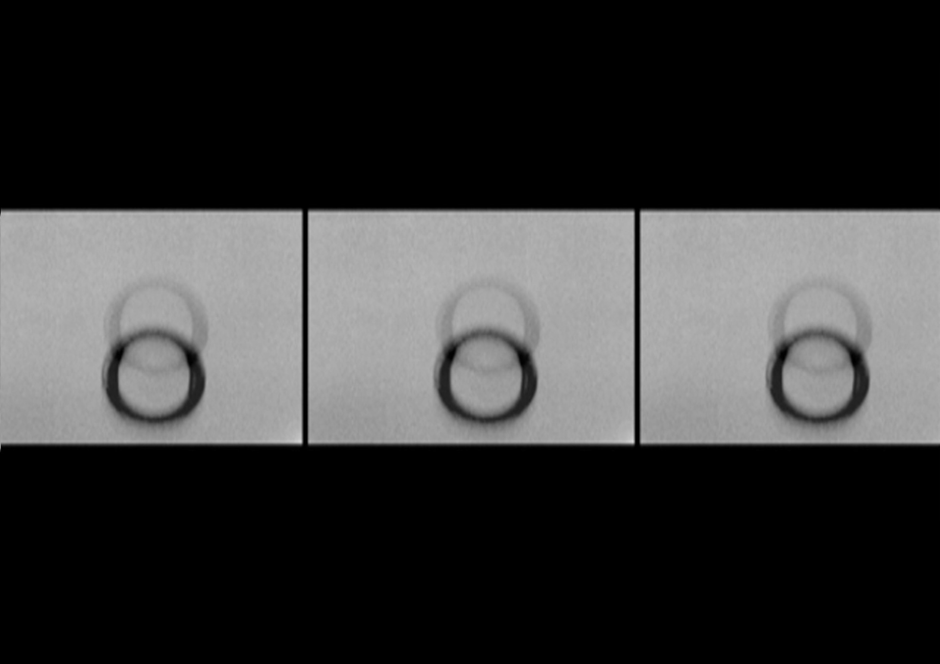 'The Hole In The Donut’ is a moving image piece that explores the representation and destabilization of linear conceptions of time. Astronomical phenomena serve as points of reference; celestial orbits and cycles, lunar/solar eclipses, and the periodic alignment of planets in the sky. The piece addresses the absurd, futile and melancholic human need to make sense, order and pattern out of a vast, often chaotic, universe. These phenomena are considered by way of an investigation into the limits of analogue photographic media, utilizing structural filmmaking techniques such as fixed framing, accelerated shutter speed, close up shots, slow motion, and the polyrhythmic use of three conflicting rhythms. Circular props of various sizes, which act as frames for negative space, are dropped in front of a 16mm camera lens in a particular order. The descending objects are then edited into a triptych of three separate rhythmic pieces, played out alongside one another. The cascading objects and sounds, though initially in unison, immediately begin to fall out of sync, eventually realigning, only to dissolve into disharmony once again. This elliptical process repeats infinitely. The loops act as interruptions to linear forward movement, and instead, like planets within a solar system, the objects are bound together in a diverging and intersecting, contrapunctal system. The space created by these loops is that of a perpetual present, emphasized by the torus shaped objects that in themselves have no beginning or end point. The title references a nickname given to Buster Keaton for his early cinematic deadpan, automaton-like performances, while also acknowledging the formal qualities of the piece's content and structure.